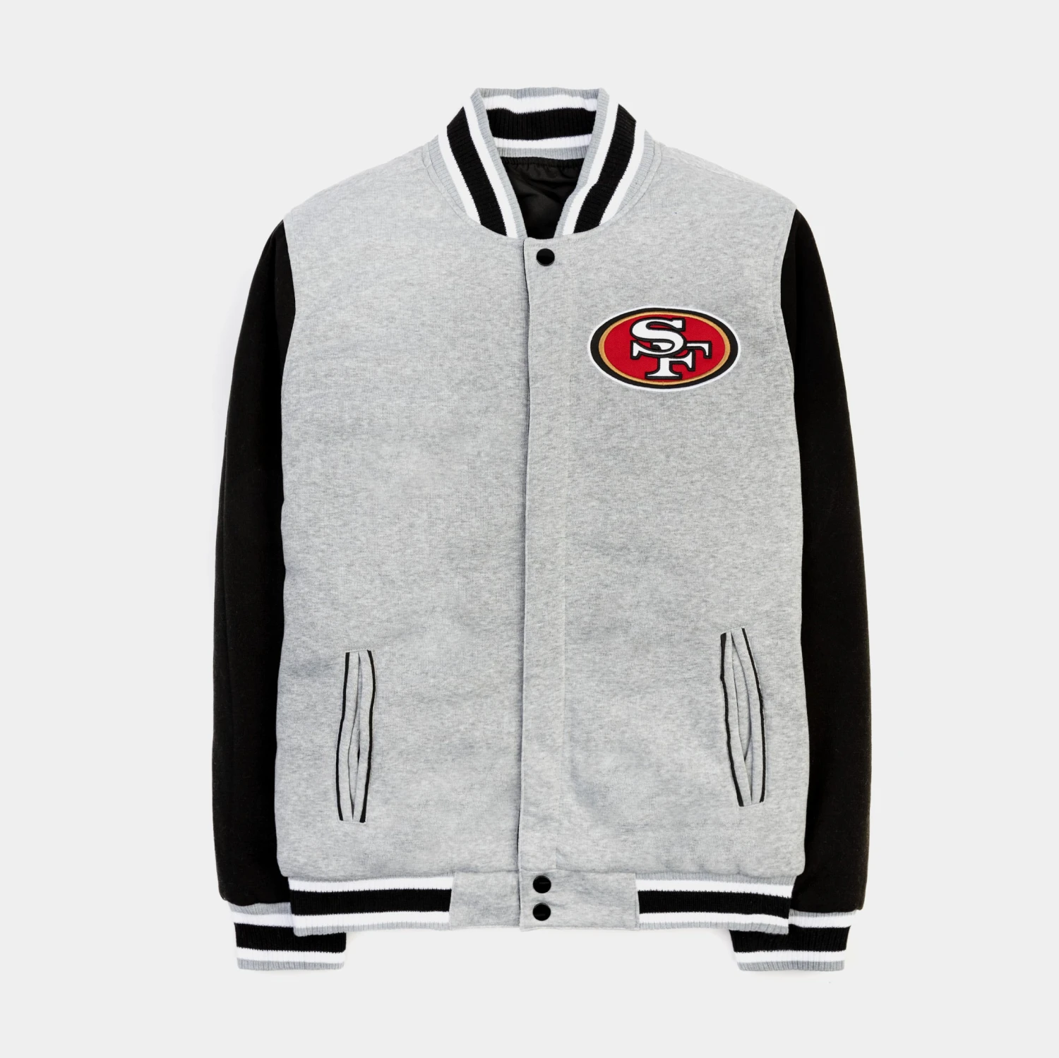 Be the first to review “San Francisco 49ers Reversible Letterman Mens Jacket (Black/Grey)” Cancel reply